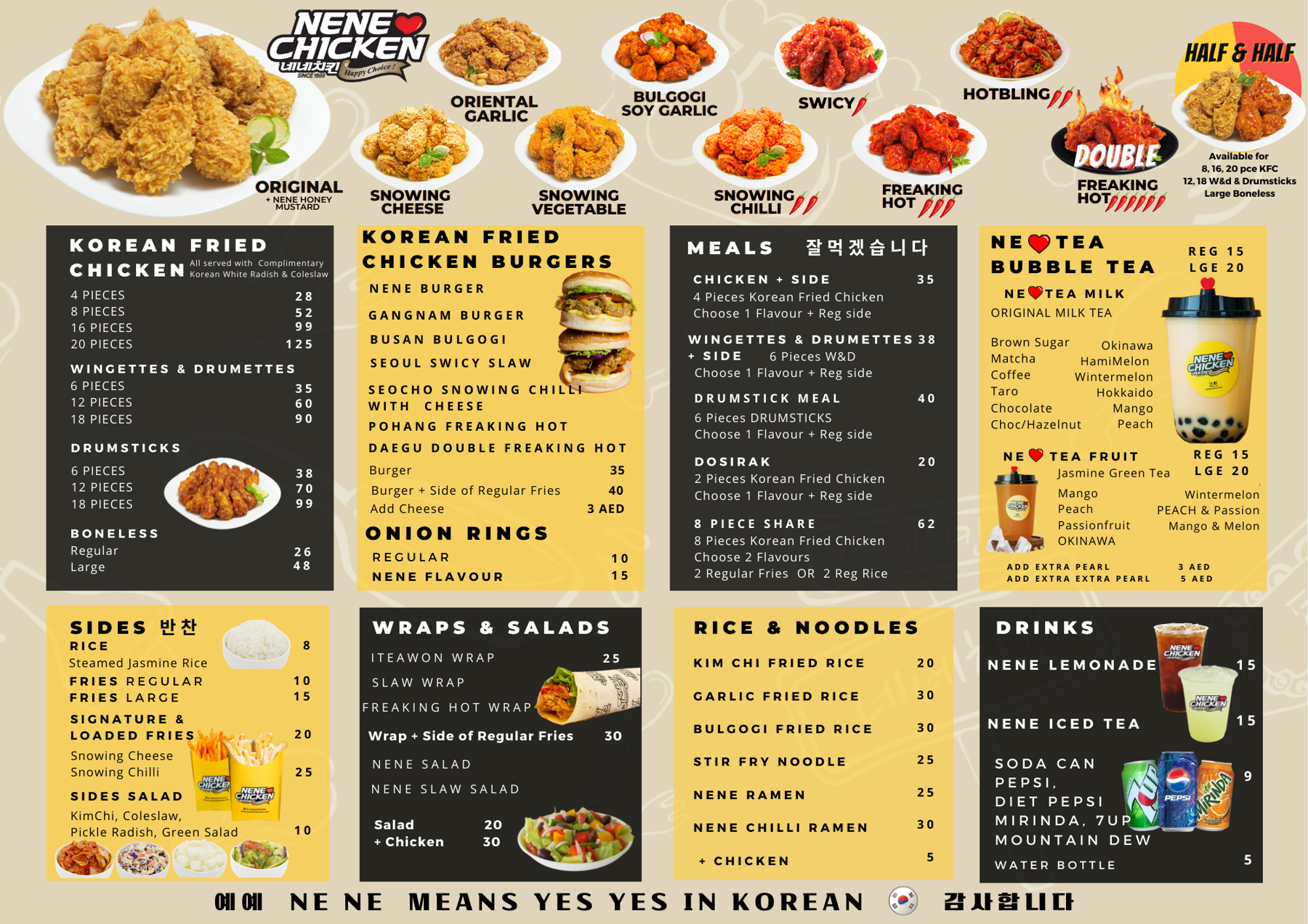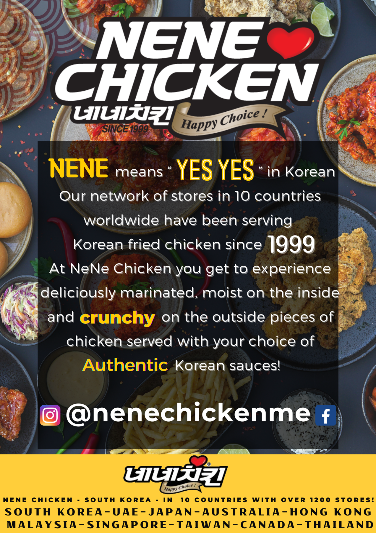 “NeNe” means “Yes Yes” in Korean and our network of stores have been serving authentic Korean fried chicken since 1999.